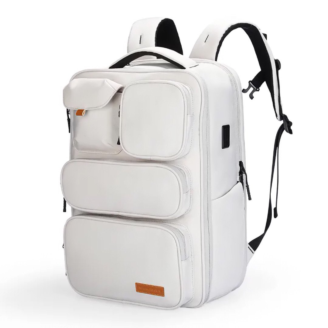 À l’arrière, une poche rembourrée permet d’y loger un ordinateur portable jusqu’à 17,3 pouces ainsi qu’une grande tablette. Le dos du sac est orthopédique, doté d’une membrane respirante, d’une sangle pour valise et d’une poche dissimulée. Une petite poche se trouve également sur les larges bretelles confortables. Sur le côté, un port USB permet de recharger votre smartphone en déplacement.